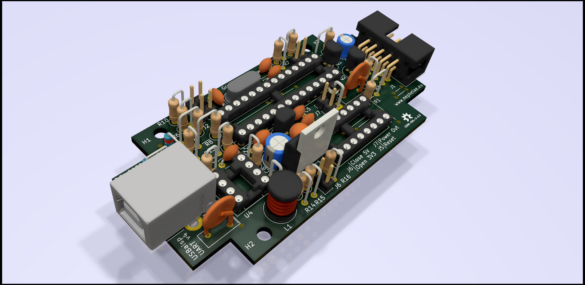 A single side, through hole, USBa(i)sp clone, designed in Kicad 5.